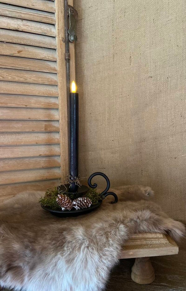 Breng een vleugje elegantie en warmte in je interieur met de zwarte kaarshouder van Countryfield, voorzien van een sierlijk handvat. Het sierlijke handvat voegt niet alleen een decoratief detail toe, maar maakt het ook gemakkelijk om de kaarshouder te verplaatsen en te stylen op verschillende plekken in huis.