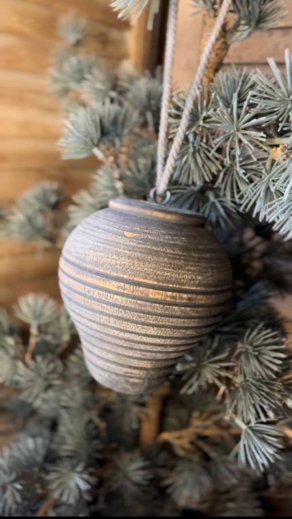 Een houten kerstbal met een omtrek tussen de 30-32cm. Leuk ter decoratie op een schaal of voor in de kerstboom.