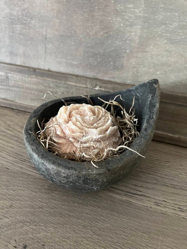 Creëer een rustgevende en stijlvolle sfeer in je huis met deze geurroos in een elegant stenen bakje. De geurroos verspreidt een subtiele, aangename geur die elke ruimte vult met een vleugje frisheid en luxe. Het robuuste stenen bakje voegt een natuurlijke, aardse uitstraling toe, waardoor dit decoratieve stuk perfect past in het landelijke interieur.