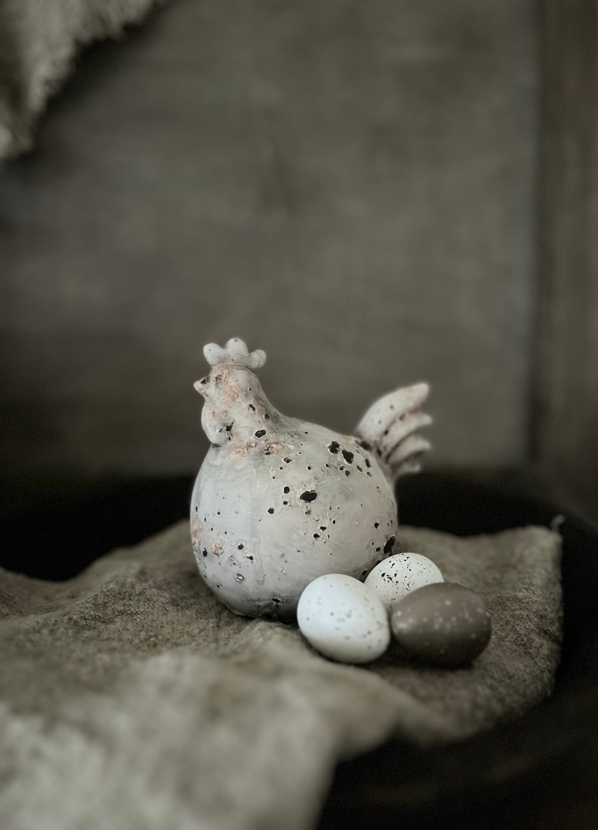 Een crème kleurige kip. Deze kip is leuk te combineren met de grote variant.