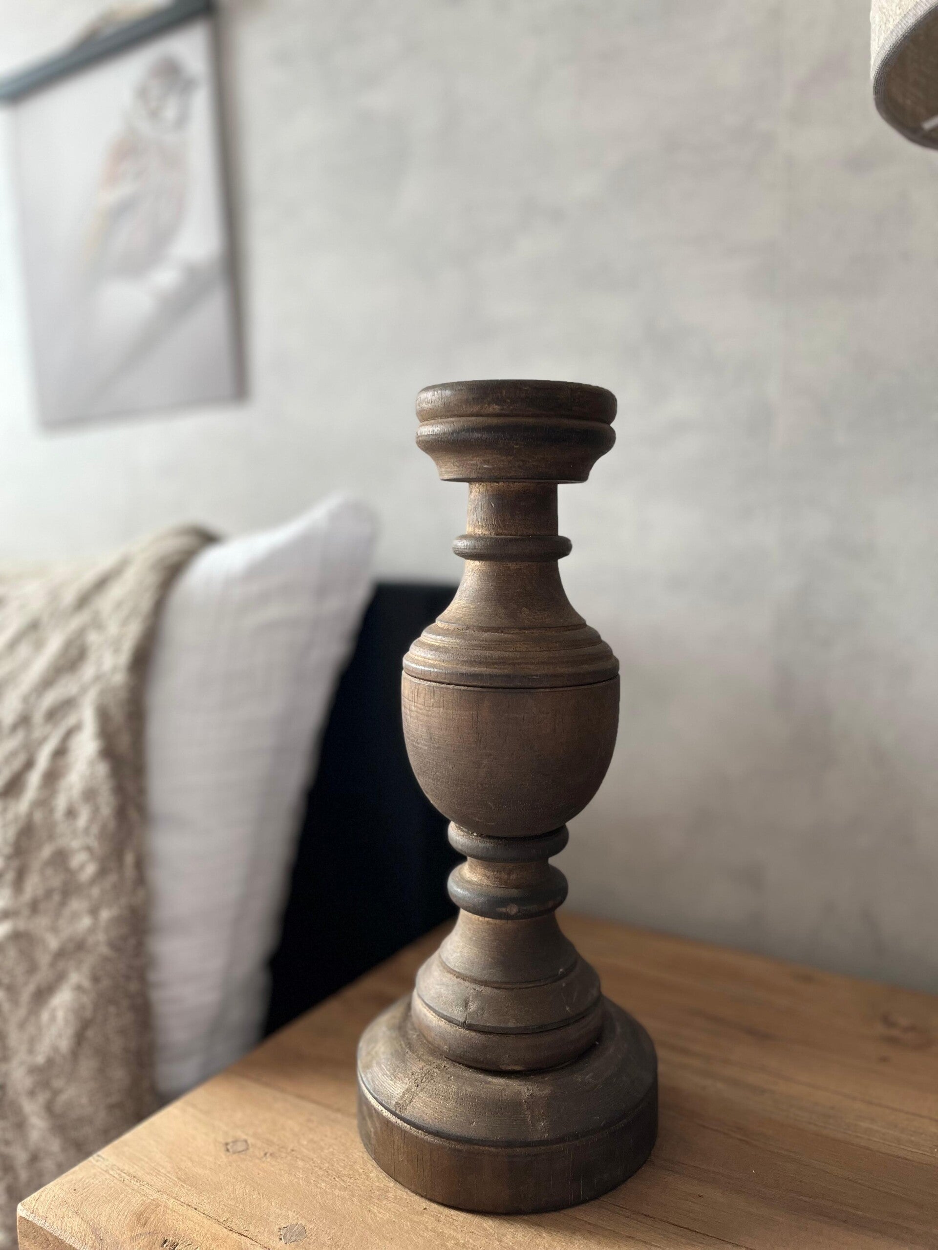 Breng een vleugje rustieke charme in uw interieur met onze prachtige kaarshouder met een bronzen afwerking. Deze unieke lampenvoet is vervaardigd uit hoogwaardig materiaal en heeft een sfeervolle, vergrijsde afwerking die perfect past bij de landelijke stijl.