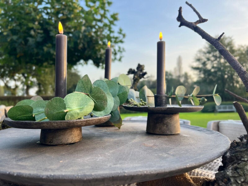 Handegemaakte kandelaar op voet, van beton in 3 hoogtes